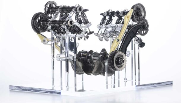 Un risultato reso possibile anche grazie all’impiego di materiali avanzati e soprattutto alla scelta tecnica di utilizzare il sistema di richiamo delle valvole a molla, che permette di sollecitare meno i componenti rispetto al classico Desmo.