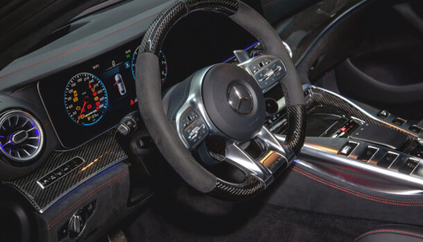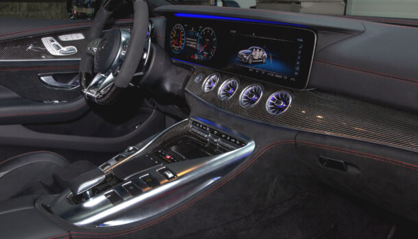 AMG GT 63 S è un coupè a quattro porte che ha nel cofano un motore V8 biturbo da 4 litri capace di sviluppare una potenza di 639 CV con una coppia massima di 900 Nm di coppia abbinato alla trazione integrale 4Matic+ e a un cambio automatico Speedshift MCT 9 a nove rapporti.