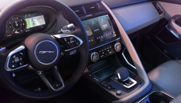 Anche l’abitacolo è stato rivisitato ed ora presenta nell’insieme un aspetto premium con un nuovo sistema di infotainment HD in vetro curvo da 11,4 pollici con l’ultimo sistema Pivi Pro Jaguar ed un nuovo volante.