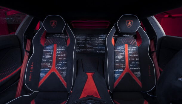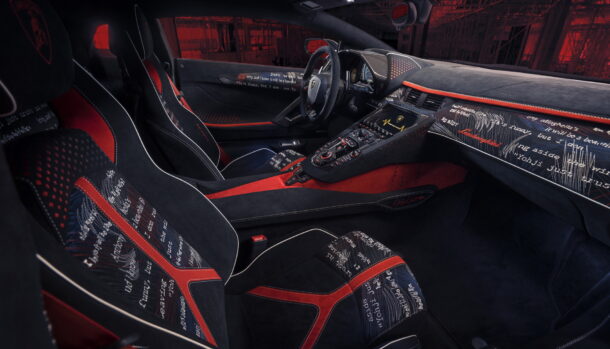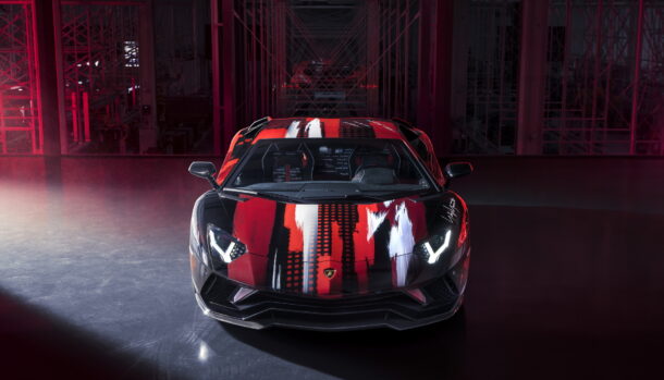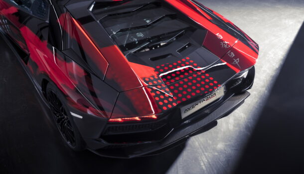 La Aventador S è stata ripensata da un punto di vista estetico dal famoso stilista, che ha rivestito la vettura con disegni e colori, con un mix di tonalità di rosso, nero e bianco che poi sono gli stessi colori e disegni che lo stilista utilizza per i propri capi d’abbigliamento.