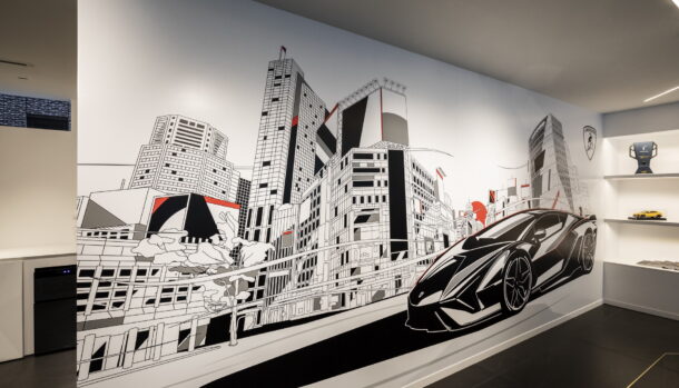 Il Lamborghini Lounge Tokyo è strutturato su tre piani