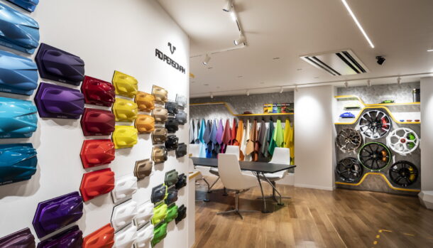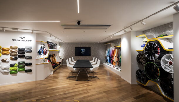 Un locale che è stato aperto nel quartiere residenziale Roppongi della capitale giapponese, al cui interno si trova lo Studio permanente Ad Personam, dove il cliente può personalizzare con colori e rivestimenti interni ed esterni la sua nuova Lamborghini fin nei minimi particolari.
