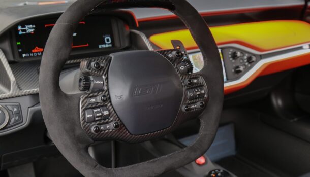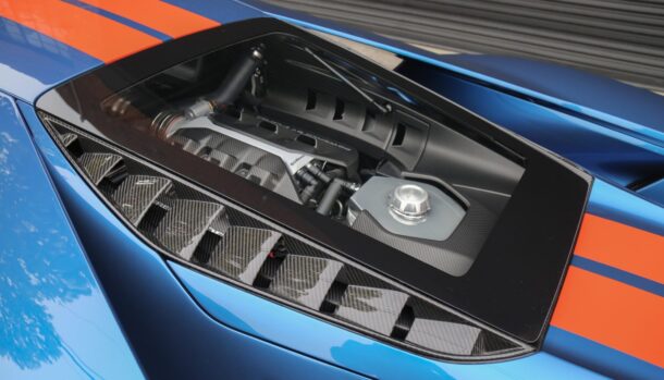 E’ stata immatricolata nel 2018 e consegnata nel Kansas, il suo leggero vestito in fibra di carbonio è impreziosito da strisce arancioni racing, una tonalità che ben si sposta con la vernice.