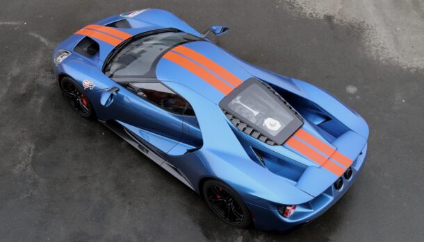 E’in vendita uno splendido esemplare con carrozzeria Liquid Blue della velocissima Ford GT una supercar senza compromessi.