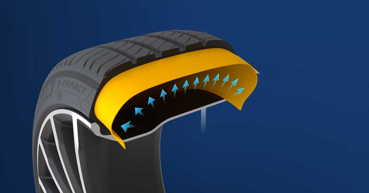 La tecnologia Energy AirShield presente sul nuovo Michelin e.Primacy rappresenta uno strato di gomma altamente ermetico che riduce la perdita di energia, contribuendo al rotolamento ed alla riduzione della resistenza.