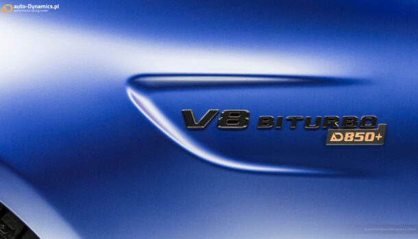 Una Mercedes-AMG così esclusiva non poteva che subire anche interventi alla carrozzeria, modifiche che hanno riguardato la vernice, ora di un blu satinato, la mascherina anteriore all black e una serie di badge identificativi del tuner Auto Dynamic.