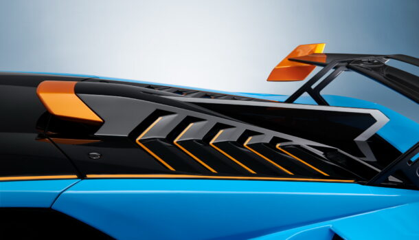 Al posteriore è presente una soluzione mutata dalla Huracan Super Trofeo Evo: un condotto integrato nel parafango posteriore funge da presa d’aria del motore, riducendo del 30% le perdite di pressione idraulica.