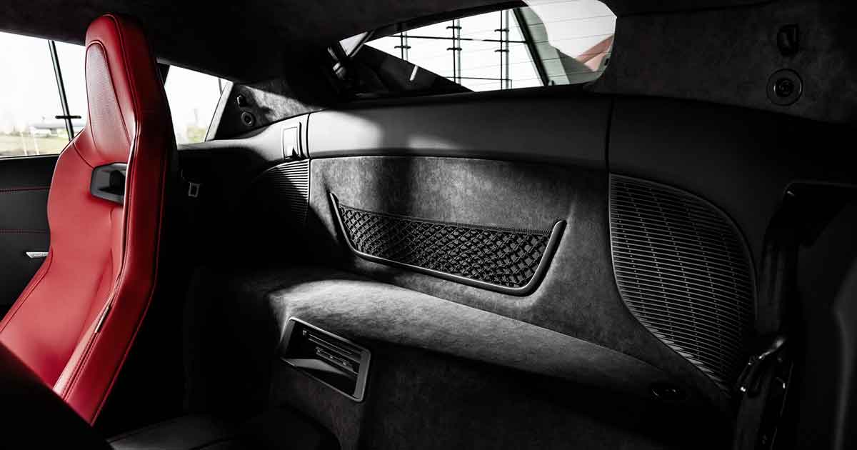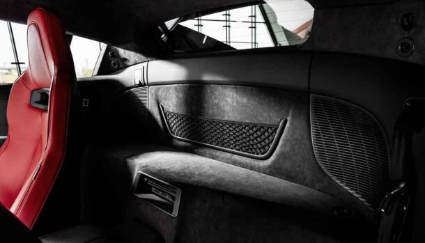 Anche gli interni presentano una speciale finitura, con i sedili rivestiti in pelle ed Alcantara, così come il cielo della vettura, rivestito in Alcantara.