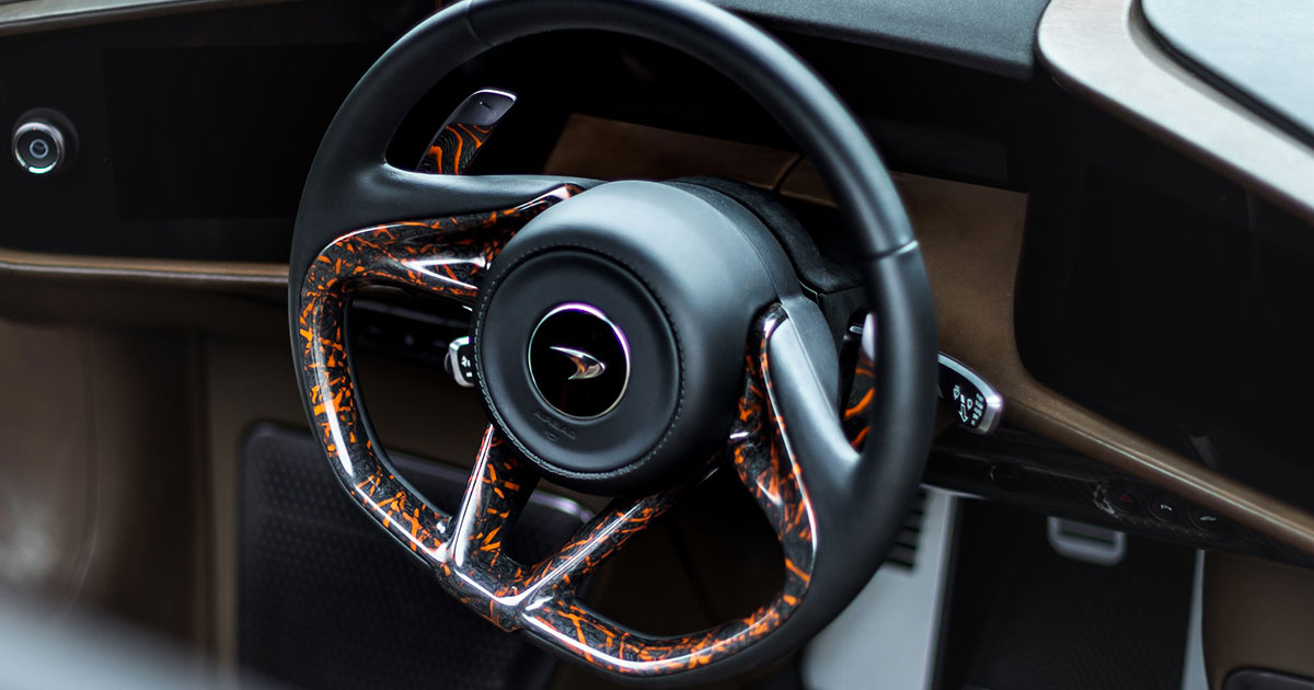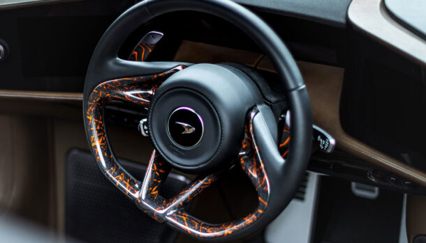 Nell’abitacolo questo materiale composto ricopre console centrale, portiere, e plancia: ricordiamo che il telaio della Speedtail è integralmente in fibra di carbonio.
