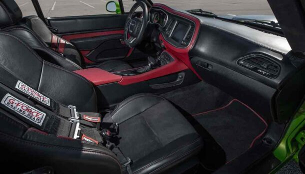 Basandosi su di una SRT Hellcat, internamente tante le parti in comune, a cominciare dai sedili anteriori, riscaldati e ventilati, così come della stessa fattura è il cruscotto e l’impianto di navigazione.