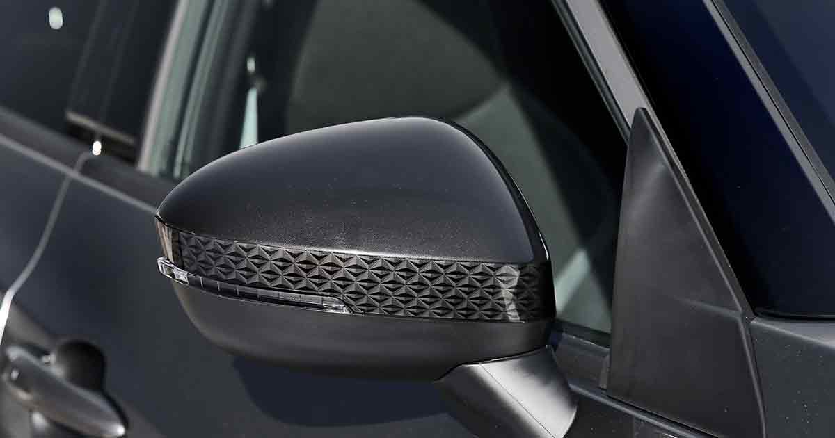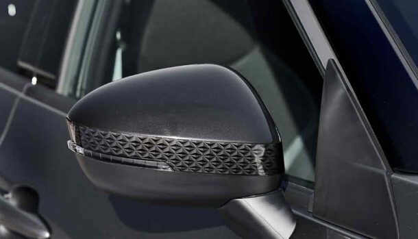 Belli i cerchi da 19 pollici Akari (leggeri), che si sposano alla perfezione con il tetto e le calotte specchi retrovisori impreziositi da un design personalizzato a intreccio.