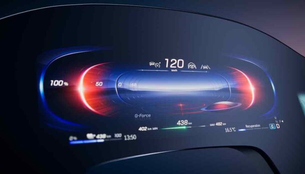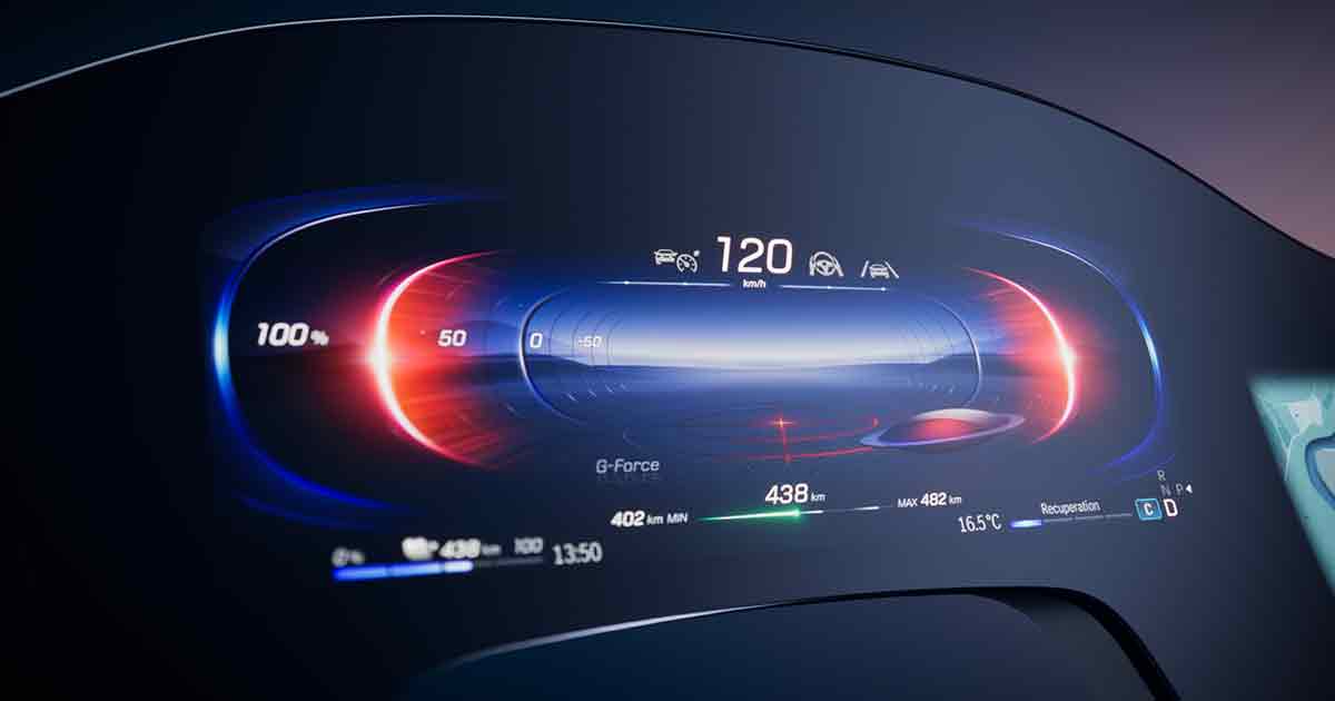 Sette i profili personalizzabili, le funzioni di intrattenimento del display passeggeri sono selezionabili solo durante il viaggio, nel rispetto delle normative legali vigenti in ogni paese; se il sedile passeggero è libero, non occupato, la porzione del display diventa una parte decorativa digitale.