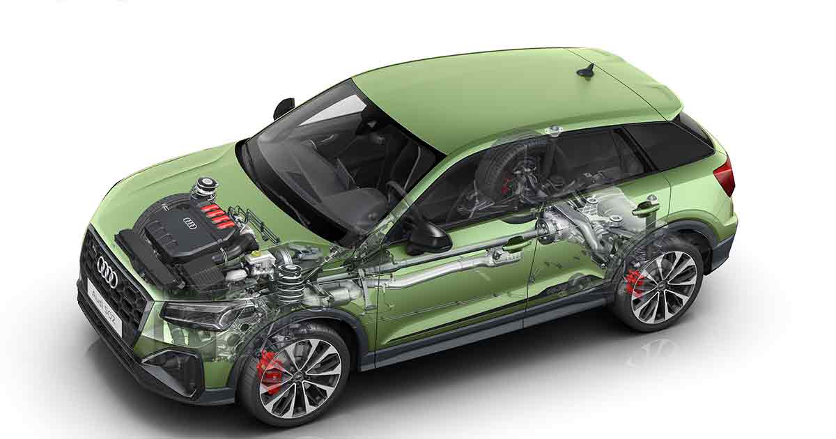 Per la nuova SQ2 è disponibile un sistema di trasmissione a doppia frizione S tronic a 7 rapporti, con frizione a lamelle elettroidraulica che ha la funzione di ripartire la potenza in modo variabile tra i due assali.