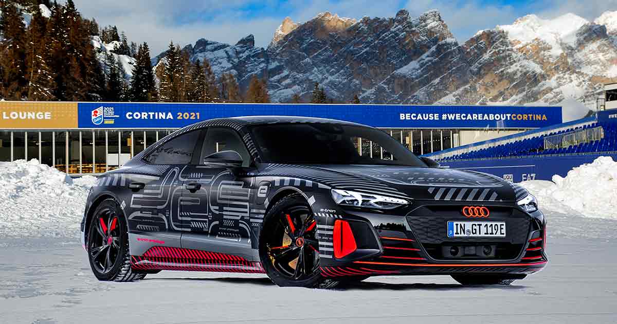 Audi RS e-tron GT sarà presentata in anteprima a Cortina in occasione dei Campionati del Mondo di Sci Alpino dal 7 al 21 febbraio prossimi con la presenza della vettura nella centrale Piazza Roma.