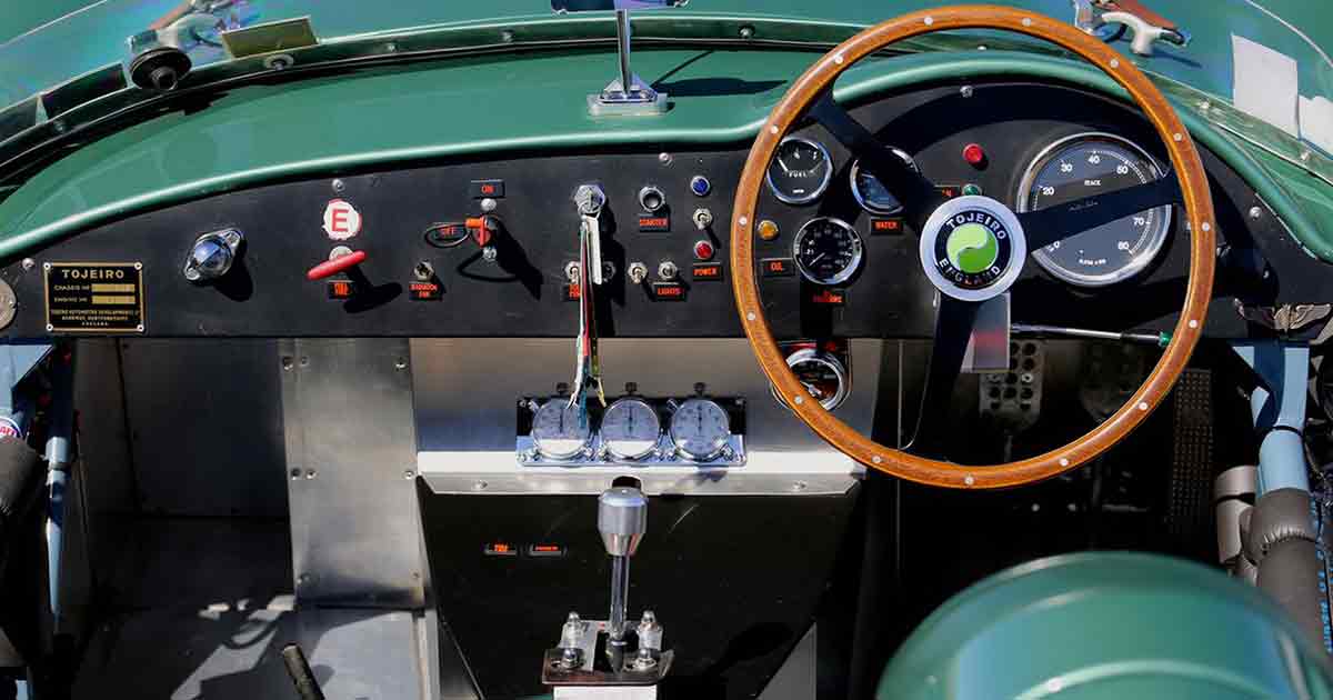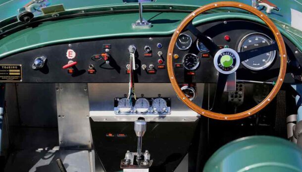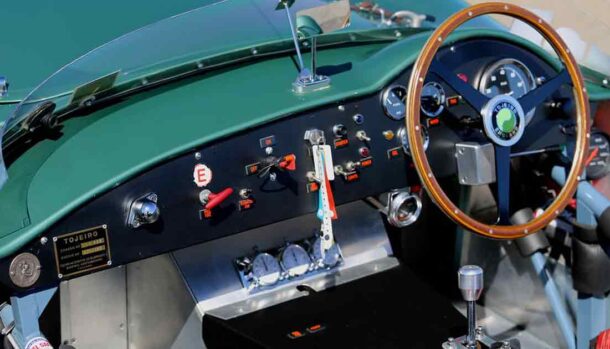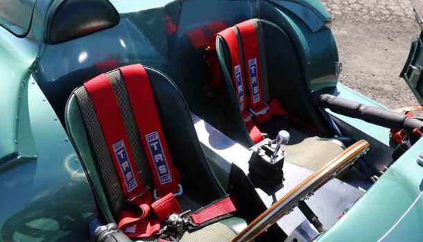 Presente anche un estintore e cinture di sicurezza racing; il parabrezza è estremamente basso, come si usava sulle vetture da competizione di un tempo.