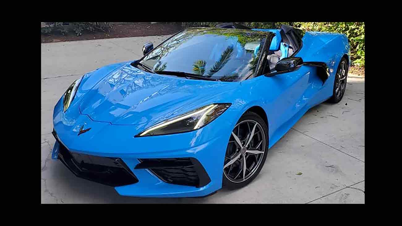 La Chevrolet Corvette dell’attore americano ha la carrozzeria con vernice Rapid Blue e cerchi in alluminio a 5 razze Spectra Grey.