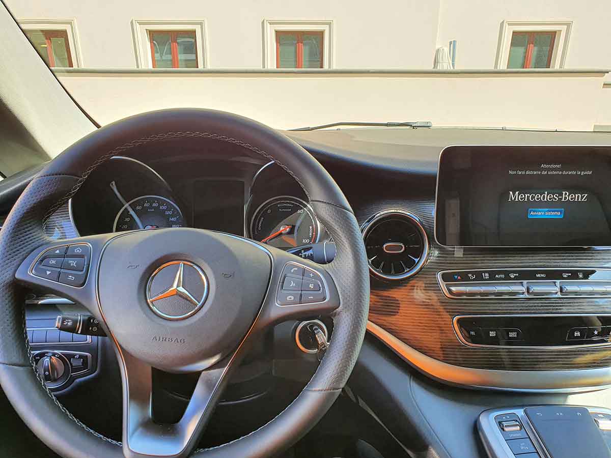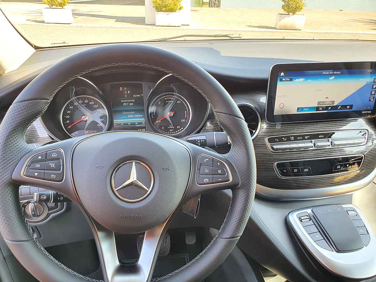 La batteria promette infatti 353 km circa nel ciclo WLTP, ma tutto dipende anche dallo stile di guida e dalla capacità di sfruttare la marcia per inerzia ma soprattutto il recupero dell’energia in frenata; quest’ultimo si gestisce su quattro livelli in totale, dal primo che prevede l’assenza di questa sorta di freno motore e fa quindi veleggiare l’EQV, fino all’ultimo che frena in modo piuttosto potente, passando per i due centrali che sono – ovviamente – vie di mezzo.