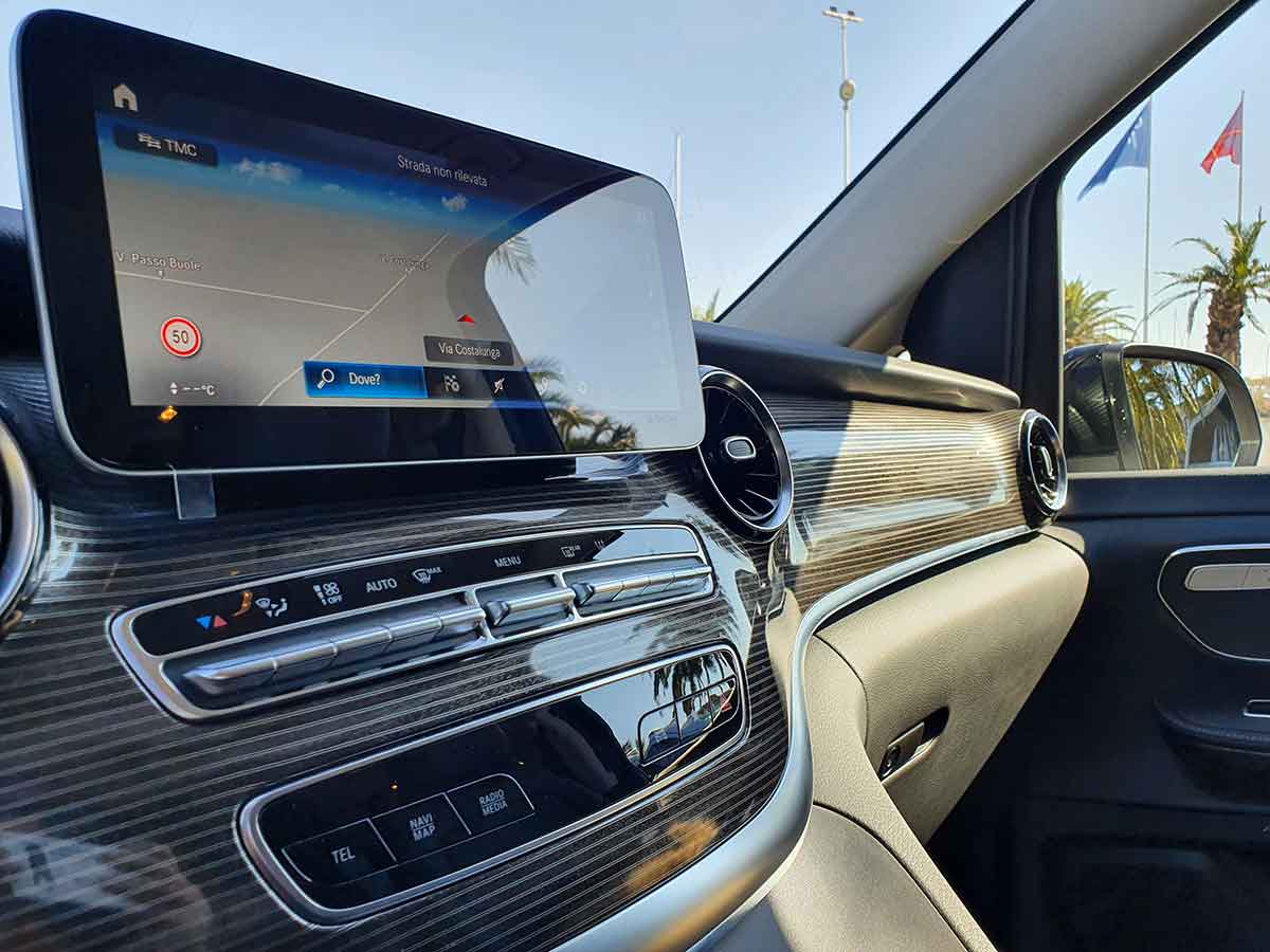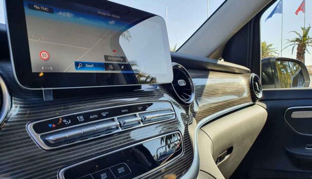 Con il Me Charge è possibile sfruttare i provider differenti di ricarica, così come anche molti parcheggi, senza dover avere applicazioni dedicate oppure fatturazioni separate. Si può pagare tutto in una sola fattura e questo sistema – lavorando in parallelo con l’MBUX – permette anche di pianificare il viaggio sulla base delle colonnine lungo il percorso, siano essere di Ionity o altro fornitore. A proposito di Ionity segnaliamo che per il primo anno la ricarica veloce viene offera a 0.29 euro al kW agli utenti di Me Charge (dopo siarriva a circa 0.80 euro al kW), d’altronde Mercedes EQV può ricaricare anchein corrente continua (DC) fino a 110 kW. Significano 45 minuti per una carica dal 10 al’80%.
