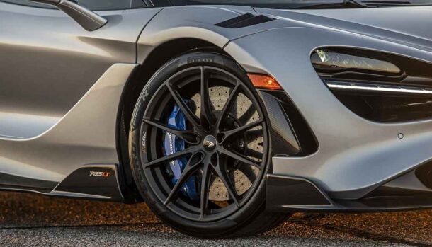 La McLaren 765LT è spinta da un V8 da 4 litri biturbo capace di una potenza massima di 765 cavalli e di una coppia di 800 Nm.