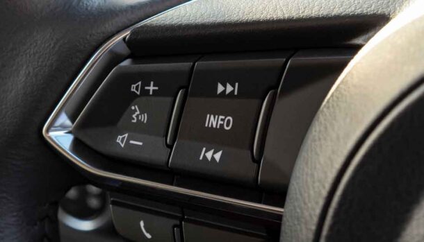 Sulla versione “Exclusive” è offerto di serie il pacchetto Mazda i-Activsense Technology che comprende la frenata automatica di emergenza anche in retromarcia, l‘avviso di abbandono della corsia, il sistema di monitoraggio dell’angolo cieco, la telecamera di riconoscimento dei limiti stradali, telecamera a 360°, ed il monitoraggio della stanchezza guidatore.