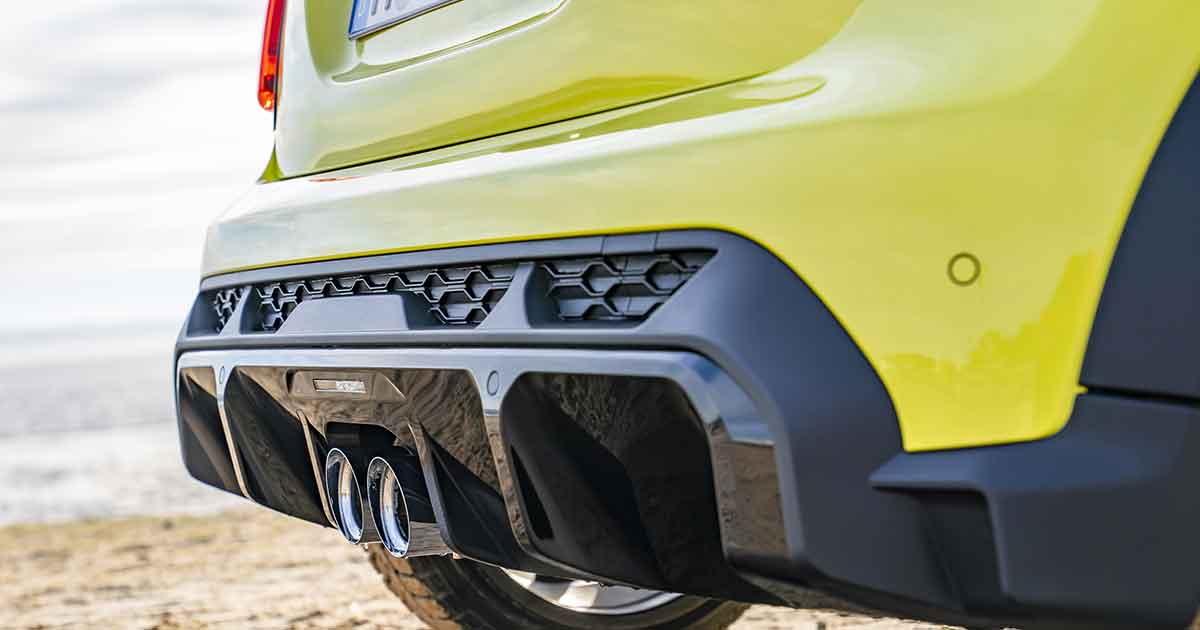 Una fascia paraurti che funge da portatarga, in tinta con la carrozzeria, un design minimalista che mette ancora più in risalto i tratti tipici e caratteristici del marchio.