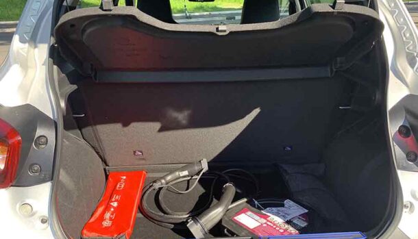 Quanto ai tempi, la durata di ricarica della batteria agli ioni di litio è pari a meno di un’ora per una ricarica all’80% e meno di un’ora e mezza per una ricarica al 100% su colonnina in corrente continua da 30 kW, meno di 5 ore per una ricarica al 100% su Wallbox da 7,4 kW, meno di 8 ore e mezza per una ricarica al 100% su Wallbox da 3,7 kW, meno di 14 ore per una ricarica al 100% su presa domestica da 2,3 kW.