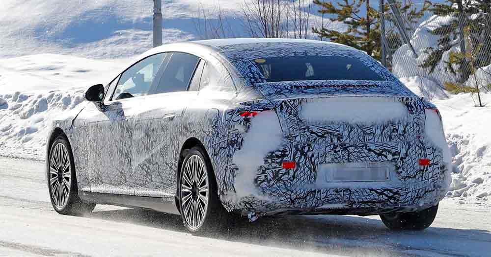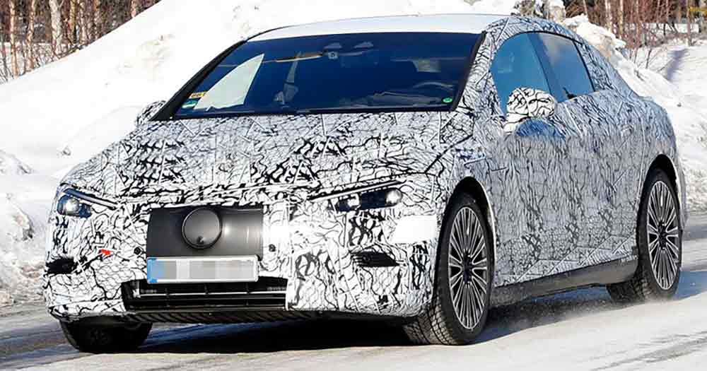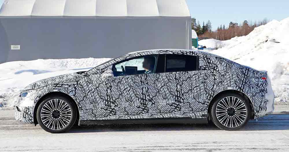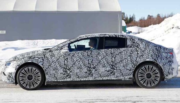Le prime foto spia non lasciano intravedere molto, la carrozzeria quattro porte è ancora debitamente camuffata, pur se nel frontale è facilmente percepibile lo schema classico delle berline Mercedes-Benz full electric