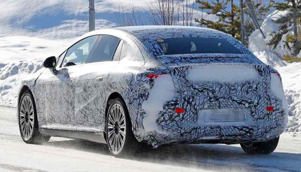 Le modifiche più evidenti rispetto l’imponente EQS saranno al retro dove i gruppi ottici sono più piccoli e nel cofano baule è presente la terza luce di stop