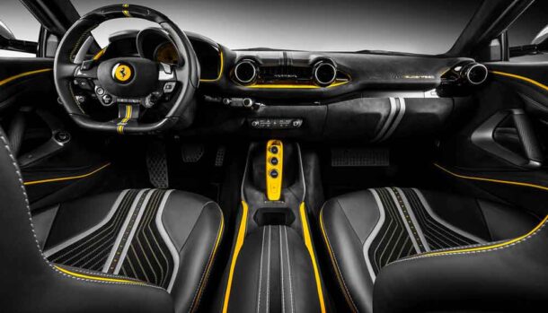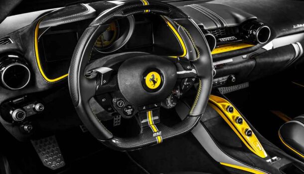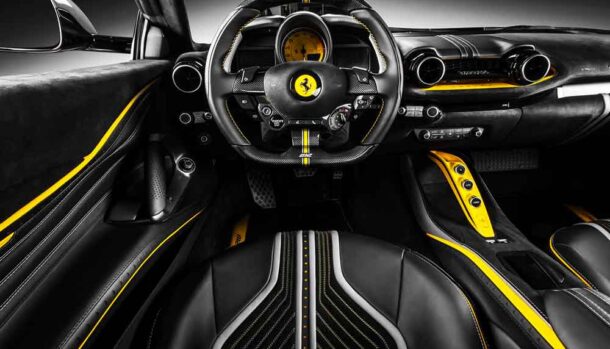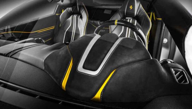 Certamente la Superfast standard non si presenta con un abitacolo non all’altezza di una sportiva con il logo Ferrari, ma questo intervento, costruito sui contrasti di colore, porta anche nell’abitacolo quella innegabile sportività che solo le auto di Maranello possiedono.