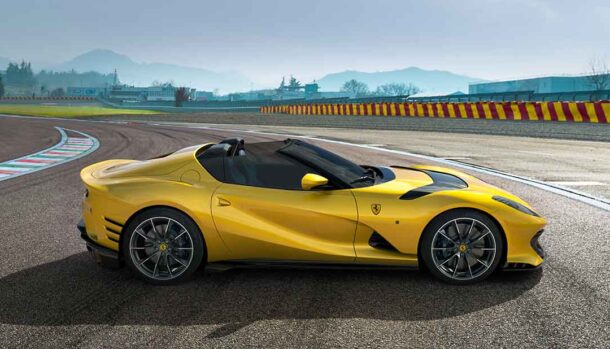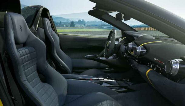 Un potentissimo dodici cilindri aspirato da 6,5 litri, un propulsore che urla fino a 9.500 giri al minuto, una potenza record per un motore stradale. Tutto è stato riprogettato per garantire le massime prestazioni possibili: le bielle sono in titanio, l’albero motore è stato riequilibrato ed alleggerito del 3% rispetto alla Superfast.