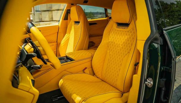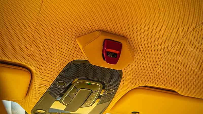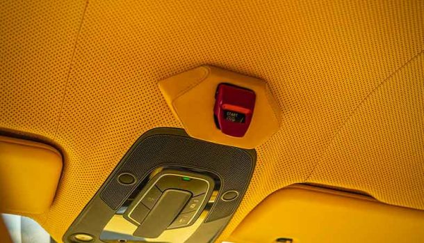 Anche l’abitacolo ha subito profonde rivisitazione, ogni superficie interna è ora rifinita in pelle giallo brillante, compresi i sedili, i pannelli delle portiere, il cruscotto, il volante, la console centrale e il tunnel della trasmissione, mentre il pulsante Start/Stop del motore è stato spostato sul tetto.