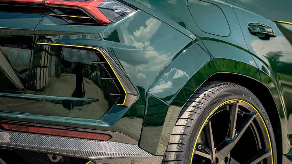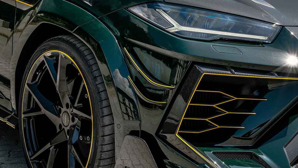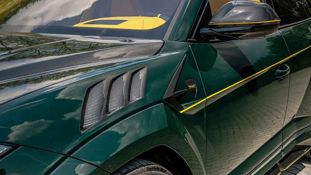 Questa vettura è caduta nella mani del tuner tedesco Mansory che ha predisposto un kit particolare chiamato “Venatus”, che con interventi estetici e meccanici rende ancora più aggressivo la Lamborghini Urus grazie a carreggiate maggiorate, paraurti rivisitati, cofano in fibra di carbonio, usata anche per minigonne, spoiler e specchietti retrovisori.