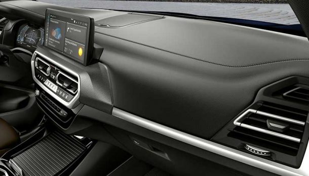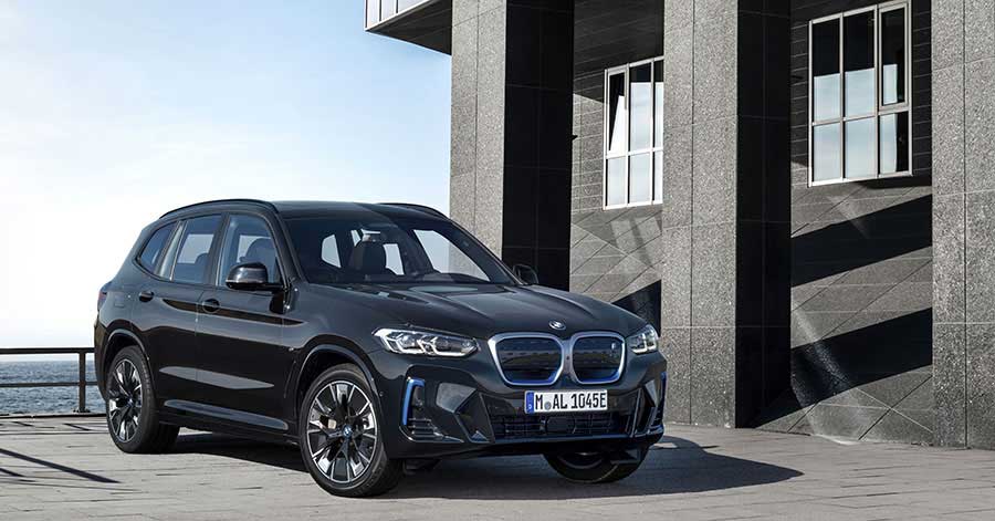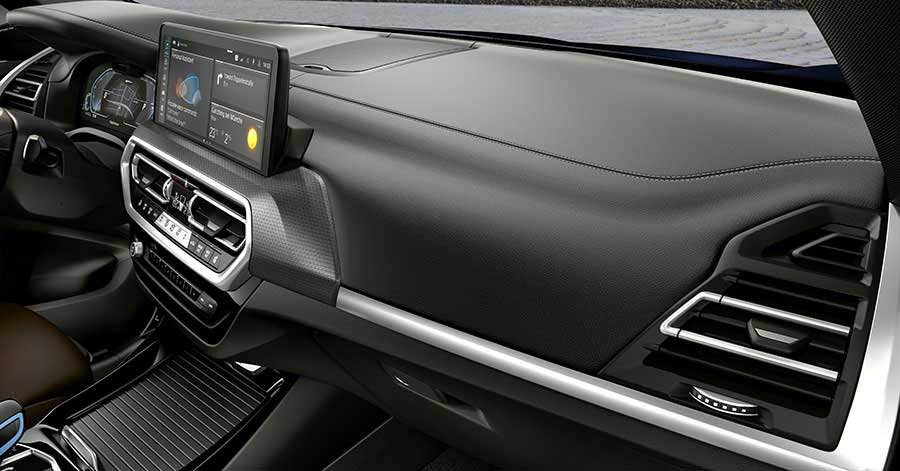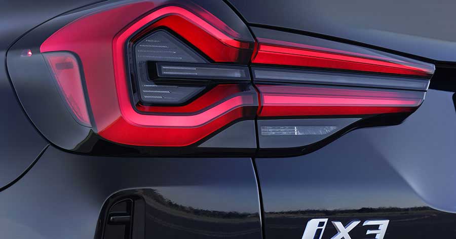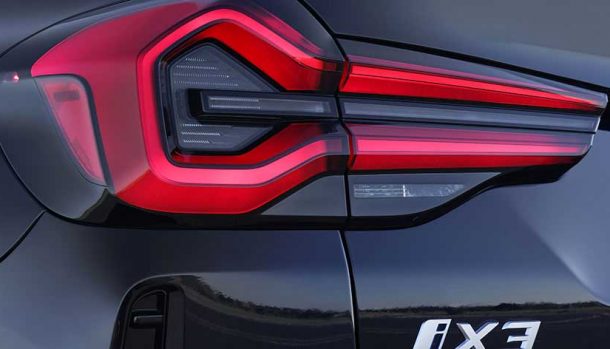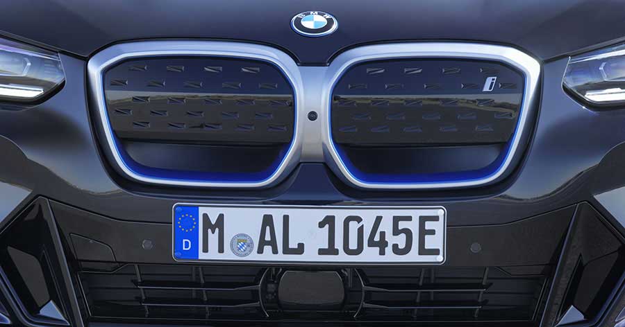 Frontalmente la griglia doppio rene è più grande rispetto a quella presente sul modello precedente ed è dotata di una cornice blu, caratteristica questa ormai tipica sui modelli i, mentre il frontale ha molto in comune con quello delle sorelle iX e i4: la nuova BMW iX3 mostra il suo dna elettrificato.