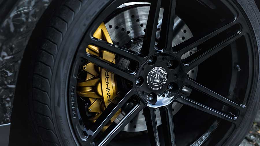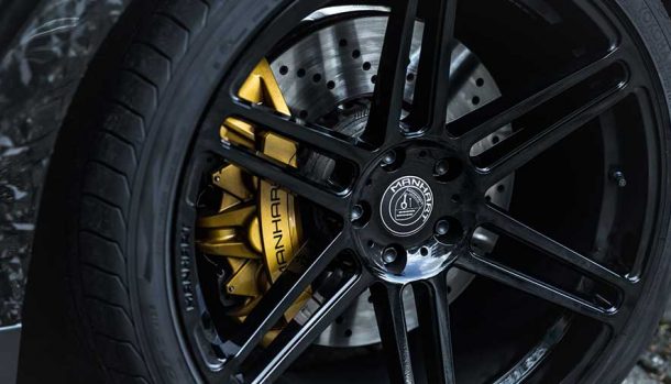 Presente anche un kit completo di cerchi forgiati Manhart Concave One da 22 pollici rifiniti in nero satinato con design a sei doppi raggi che calzano pneumatici da 295/30 R22 all’anteriore e 315/30 R22 al retro.