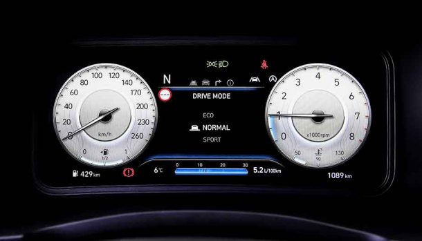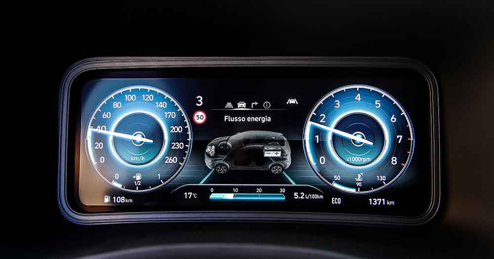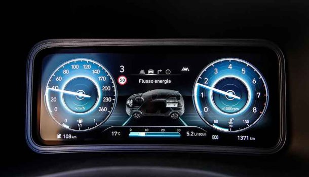 Nell’abitacolo del crossover Hyundai la strumentazione è full digital con display da 4,2 pollici, a richiesta è disponibile un pratico e utile head-up display che proietta sul parabrezza informazioni relative alla velocità ed indicazioni sul sistema di navigazione.