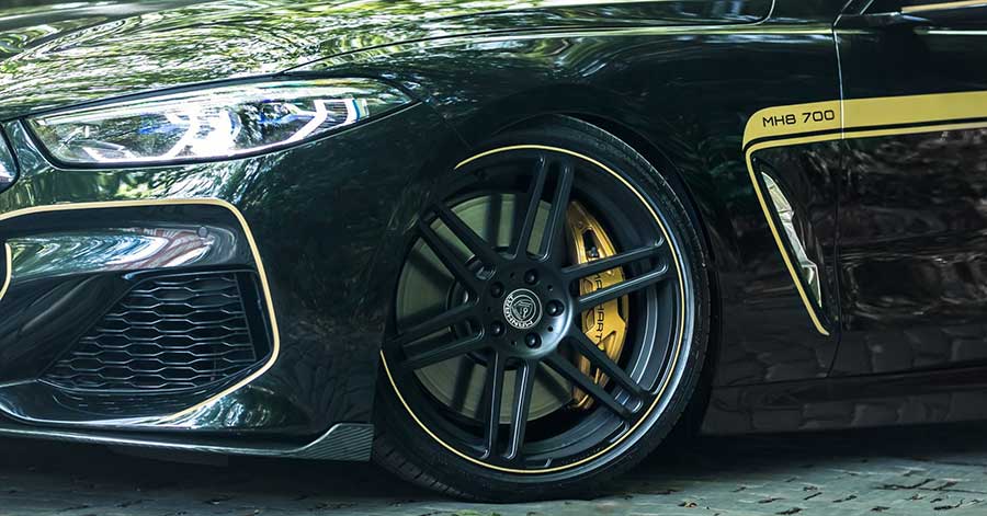 I cerchi sono Manhart Concave One da 20 pollici calzano pneumatici da 245/35 all’anteriore e 275/30 al posteriore.
