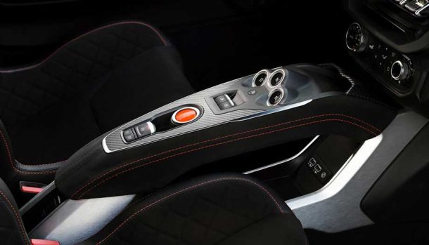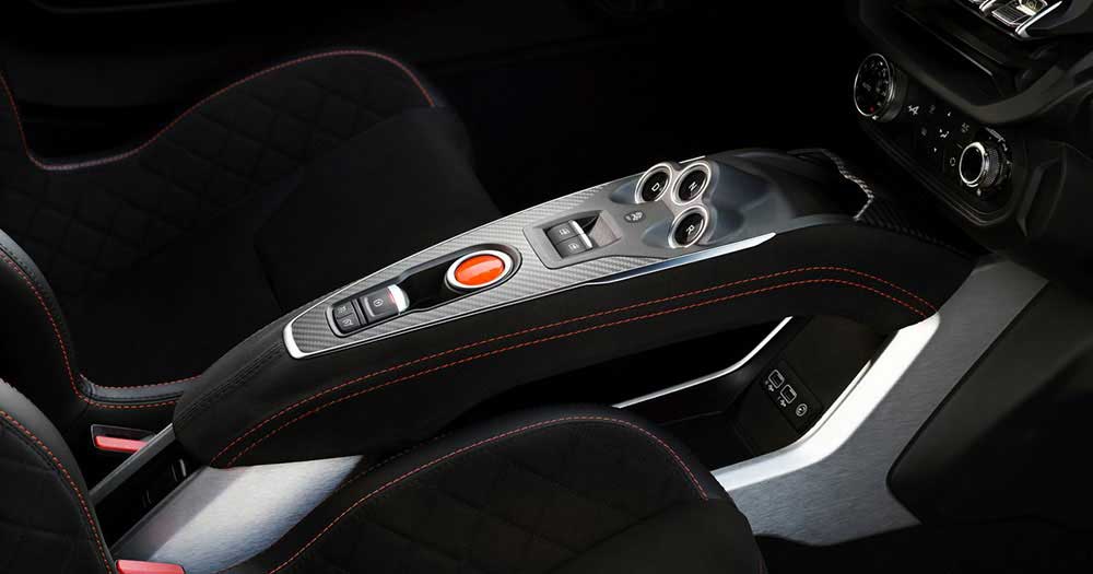 Sulla versione S è disponibile un kit aerodinamico composto da uno spoiler posteriore in carbonio al fine di migliorare l’efficienza del diffusore posteriore.