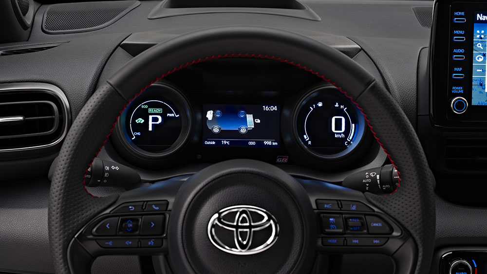 La cinque porte giapponese può essere ordinata anche nell’esclusiva livrea Dynamic Grey con tetto nero e con cerchi da 18 pollici che presentano dettagli rossi che ricordano i colori del Team Gazoo Racing.