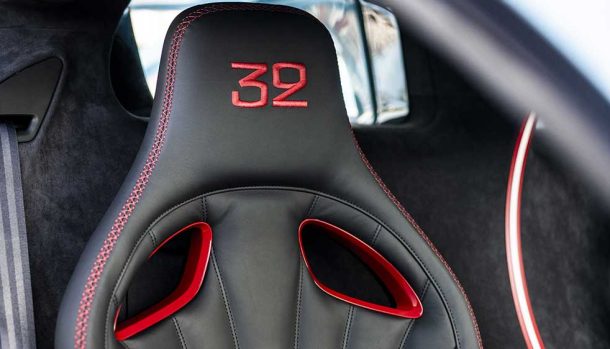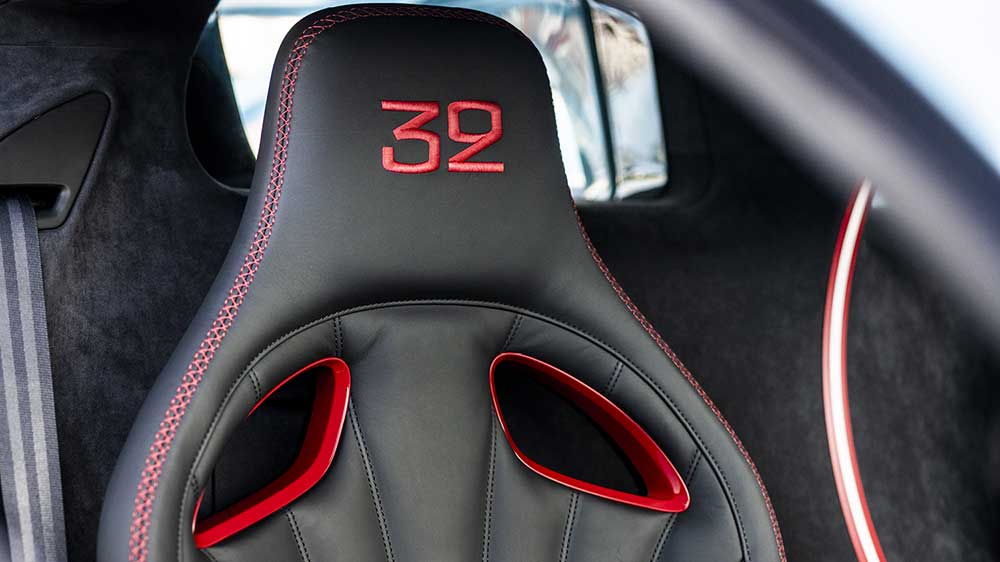 Per questa vettura sono stati creati due colori particolari, ispirati alle auto da corsa degli anni ’20 e ’30, mentre nell’abitacolo tanta Alcantara con inserti in alluminio anodizzato sulla consolle centrale e la scritta “GRA” dipinta a mano in argento.