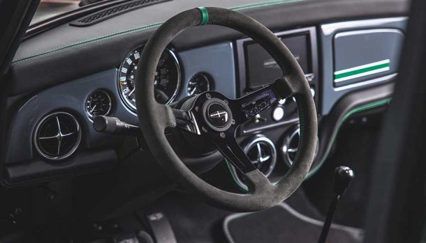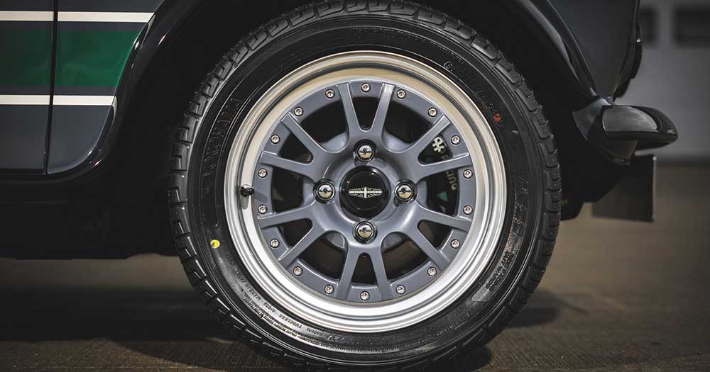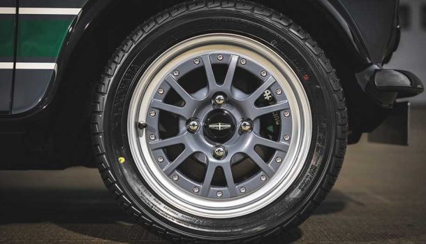 La vettura si presenta con una livrea Carbon Grey con accenti Heritage Green e dotata di una griglia che incorpora due fari supplementari. Belli i cerchi in lega da 13 pollici rifinitii in Graphite.