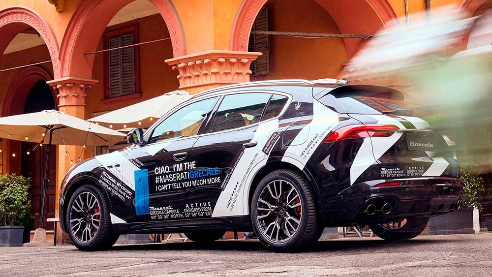 Anticipando la Global Premiere lo Sport Utility Vehicle costruito a Modena si mostra al pubblico con una livrea che ne camuffa, seppur in parte, la linea ma che è impreziosita da una serie di messaggi che lasciano presagire quanto il nuovo veicolo punterà al puro piacere di guida.
