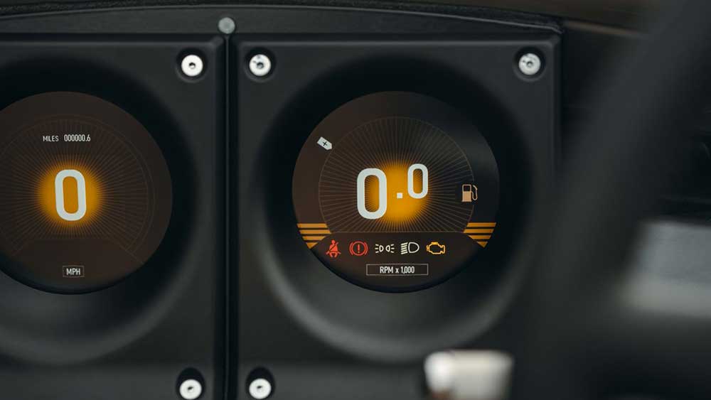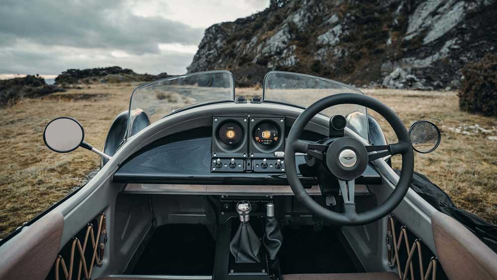 Nell’abitacolo il cruscotto, minimalista, include i tradizionali quadranti Morgan che per la prima volta sono digitali. Caratteristico è il pulsante di avvio ed arresto del motore, ispirato al pulsante di “rilascio missili” degli aerei militari. I sedili sono realizzati in vinile, un materiale resistente all’acqua, ai raggi UV nonché di facile manutenzione.