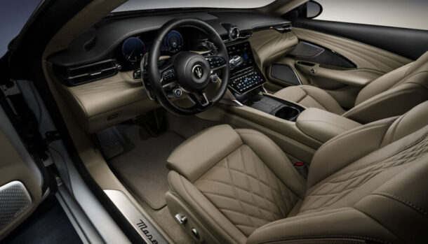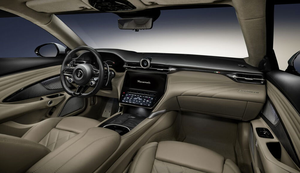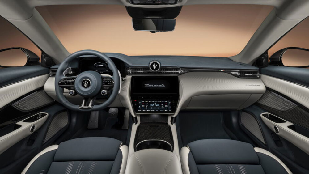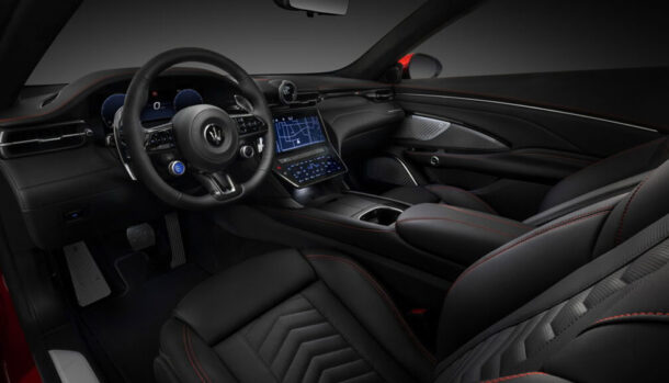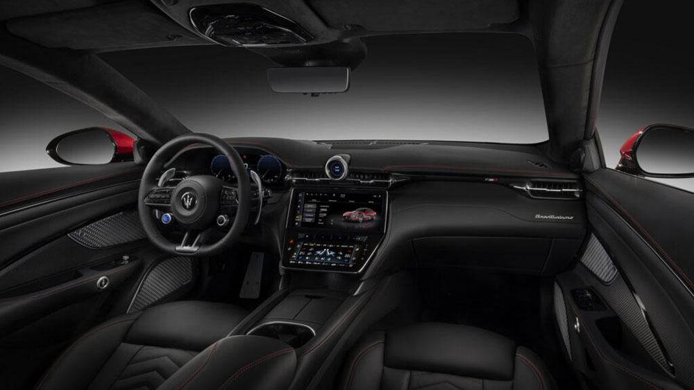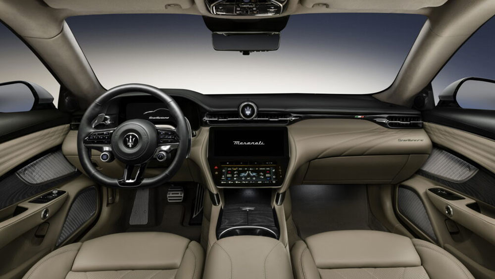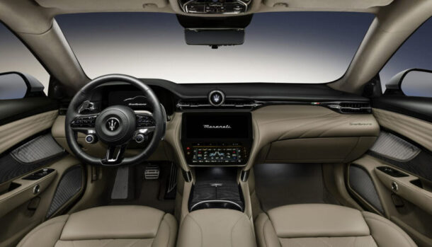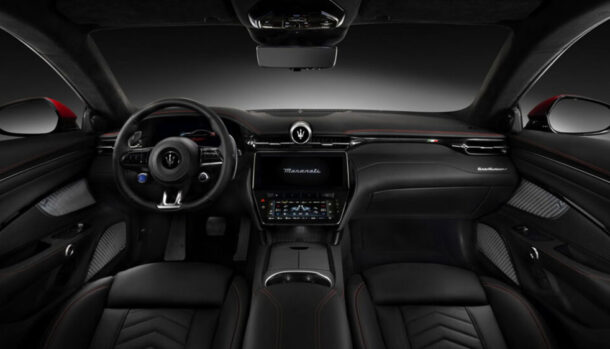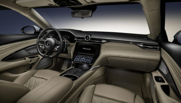 La plancia della nuova GranTurismo ha diverse analogie con la Grecale, con il volante sportivo ,ed ospita diversi comandi, come il pulsante d’avviamento, mentre al posto dell’iconica strumentazione analogica si fa strada un display digita da 12,2 pollici.