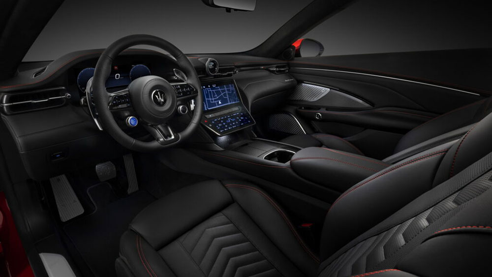 Ogni vettura sarà diversa, ognuna con proprie caratteristiche: la GranTurismo Modena avrà un abitacolo con rivestimenti in pelle ed inserti in legno, la Trofeo avrà finiture in materiale composito, mentre la Folgore, avrà interni in tessuto Econyl, un materiale ricavato dal nylon riciclato per enfatizzare ancora di più la sua anima ecologica.