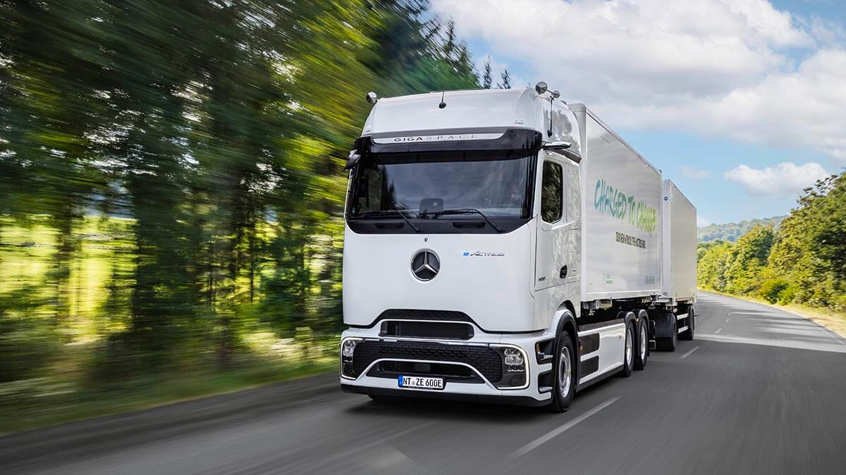 Specificamente progettato per l’impiego nel trasporto pesante su lunghe percorrenze, Mercedes-Benz Trucks ha sviluppato un nuovo asse elettrico a 800 volt con due motori elettrici e cambio a quattro velocità. I motori elettrici generano una potenza continua di 400 kW ed una potenza di picco di 600 kW e garantiscono una vigorosa accelerazione, un elevato livello di comfort di marcia ed un eccellente dinamismo. La piena potenza del motore è generalmente disponibile quasi senza interruzione della coppia.