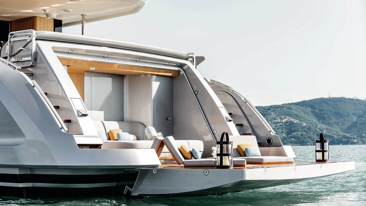 Grande 36M è un un superyacht caratterizzato da l’Upper Deck semi-walkaround che corre da poppa fino a quasi all’estrema prua su un unico livello, una rivoluzione del layout tradizionale e la conquista di un ambiente prima inesistente su una barca di queste dimensioni. A rafforzare l’esperienza di uno stile di vita senza barriere sono le vetrate apribili della skylounge che, totalmente a scomparsa, trasformano il ponte in un immenso spazio affacciato sull’orizzonte. Le linee esterne dallo stile inconfondibile sono di Alberto Mancini, mentre il design degli interni è curato da Achille Salvagni.