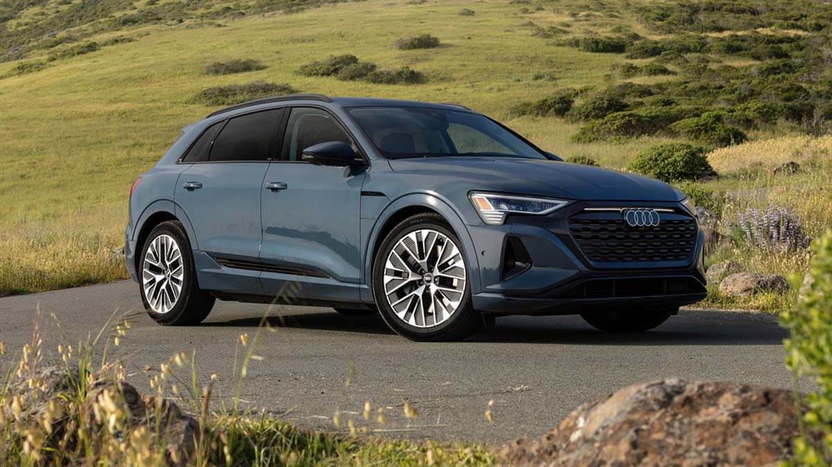 L’Audi Q8 E-TRON, ammiraglia della famiglia “Q” della Casa dei Quattro Anelli, si aggiorna nell’estetica e nella tecnologia, e gli sbalzi corti ed il passo lungo danno luogo a proporzioni sportive ed eleganti, enfatizzate dai nuovi colori a disposizione per la carrozzeria.