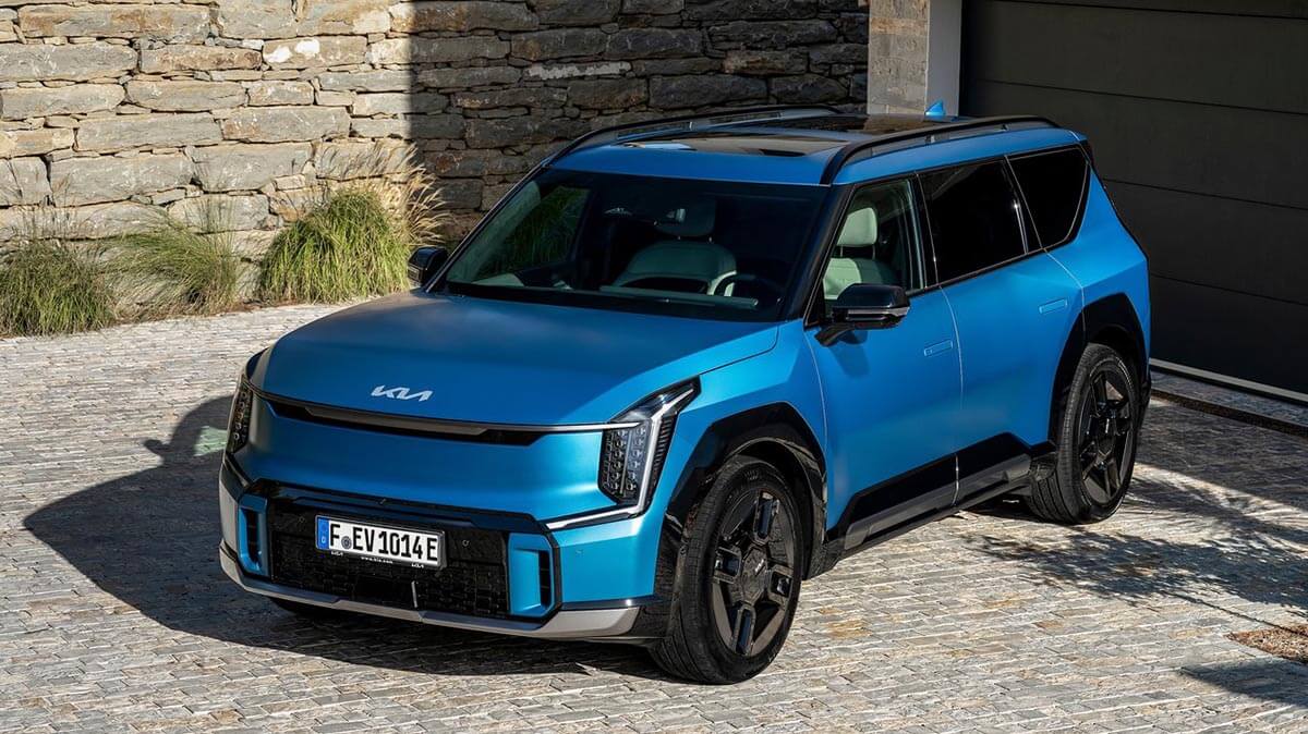 Per la livrea la EV9 potrà disporre, per il mercato europeo, di cinque colori lucidi, tra cui Snow White Pearl, Aurora Black Pearl, Flare Red, Pebble Grey, Iceberg Green, mentre l’Ocean Blu sarà disponibile sulla GT con finitura opaca o lucida.