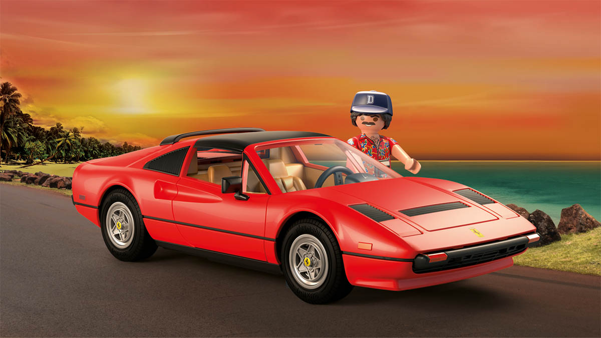 Il set include i personaggi principali della serie: Thomas Magnum in camicia hawaiana, T.C., Rick e Higgins.