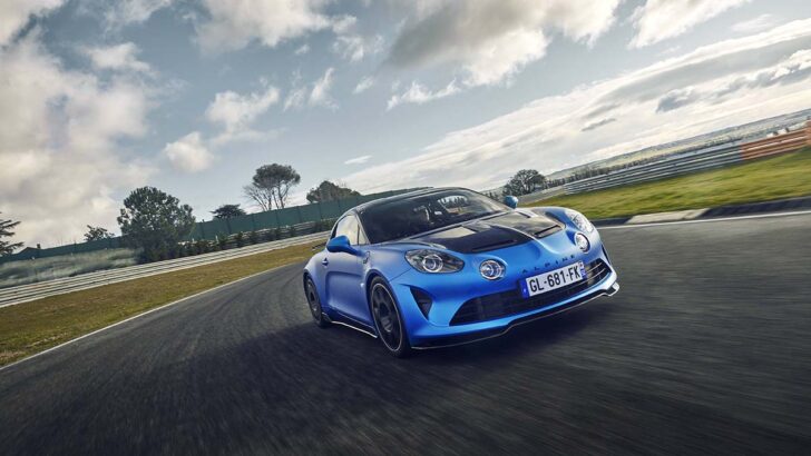 Alpine A110 S, equipaggiata con il telaio “Sport” che valorizza appieno il motore da 300 cv. Sportiva nell’anima, è dotata, in opzione, di pneumatici semi-slick e Kit Aerodinamico specifico per soddisfare i conducenti che desiderano una guida più spinta, soprattutto in pista.